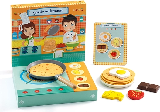 Divertiti con il gioco delle frittelle di DJECO, dove i bambini creano frittelle fantastiche con l'aiuto dei personaggi Gaëlle e Titouan. Un gioco eccellente per lo sviluppo della creatività e della motricità fine.