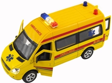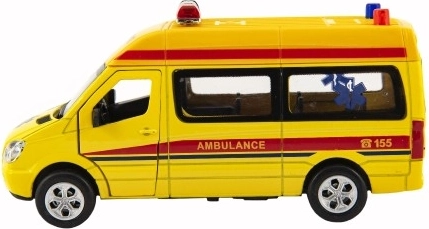 Questa ambulanza dettagliata combina un solido telaio in metallo con resistenti componenti in plastica, ideale per il gioco creativo. Grazie alla retrocarica si muove senza bisogno di telecomando, mentre le porte anteriori e posteriori apribili aumentano realismo e interattività.