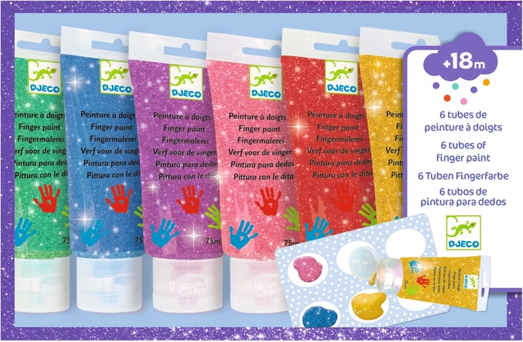 Colori a dita DJECO offrono una fantastica opportunità per stimolare la creatività e il divertimento dei bambini. Toni scintillanti portano un effetto luminoso unico.