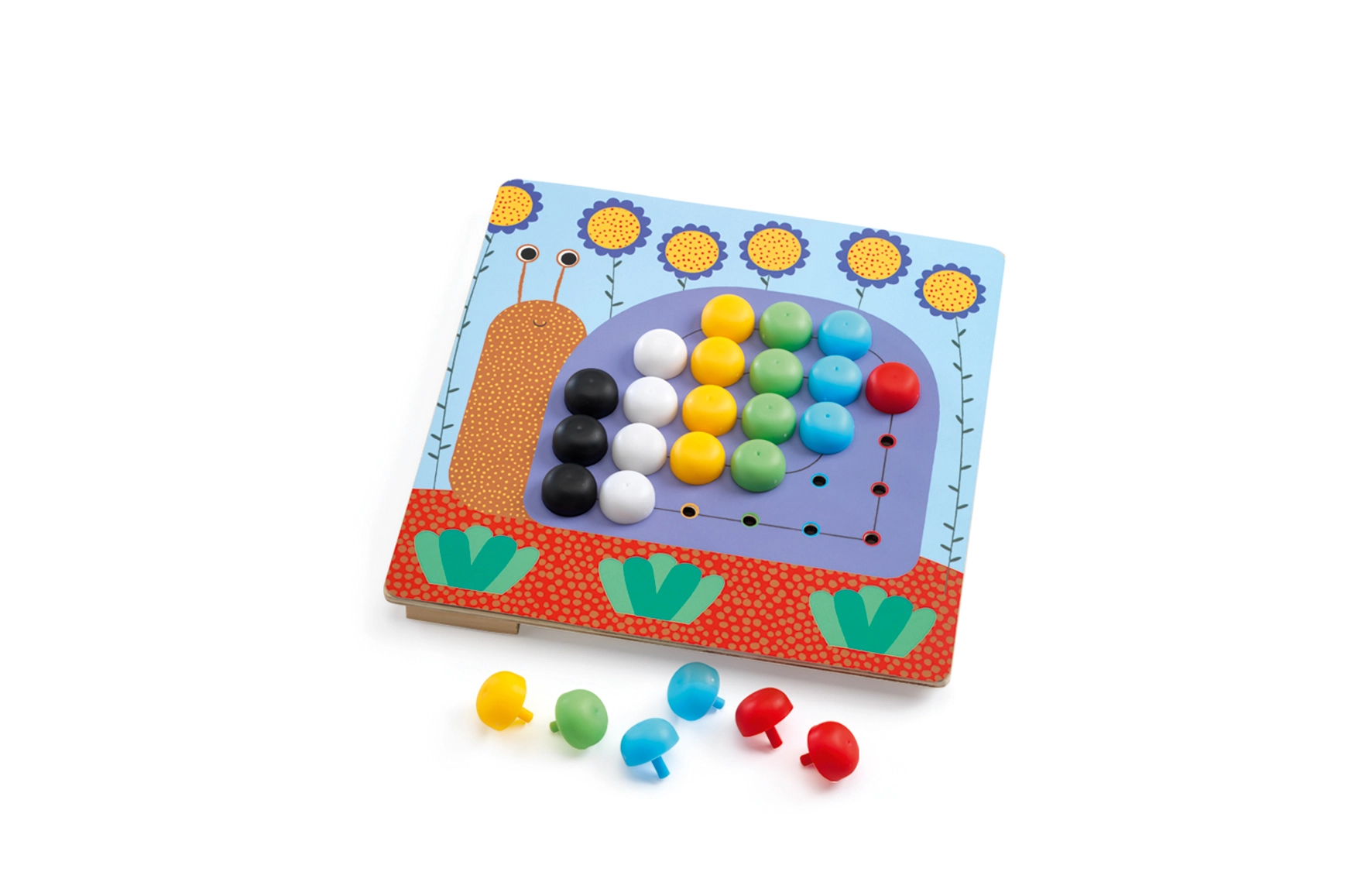 Scopri il mondo creativo con Djeco prima mosaico Animali, che supporta la fantasia dei bambini e la motricità fine attraverso il gioco con pezzi colorati.