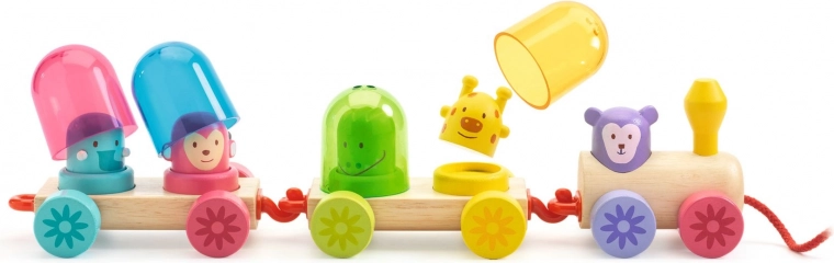 Djeco Rainbow Train è un trenino che unisce il divertimento all'apprendimento. È composto da nove pezzi in legno e quattro cupole colorate trasparenti che permettono ai bambini di scoprire la miscelazione dei colori. I bambini possono osservare i cambiamenti cromatici, sviluppando così la creatività e la comprensione delle combinazioni di colori. Il trenino è progettato per essere tirato da un cordino, il che favorisce le abilità motorie e la coordinazione occhio-mano dei bambini.