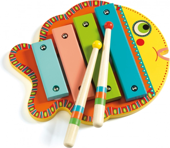 Il xilofono a forma di pesciolino del marchio Djeco è lo strumento perfetto per i bambini che stanno imparando a conoscere la musica. Questo xilofono dai colori vivaci è progettato per attrarre e ispirare i bambini a scoprire diverse melodie.