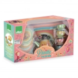Organizzare un tè non è mai stato così magico come con il set da tè Vilac Musical. Questo set in metallo conquista con le sue illustrazioni fiabesche a tema "foresta magica" e con l’unico elemento musicale. Inclinando la teiera parte una dolce melodia che aggiunge un tocco di incanto al gioco.