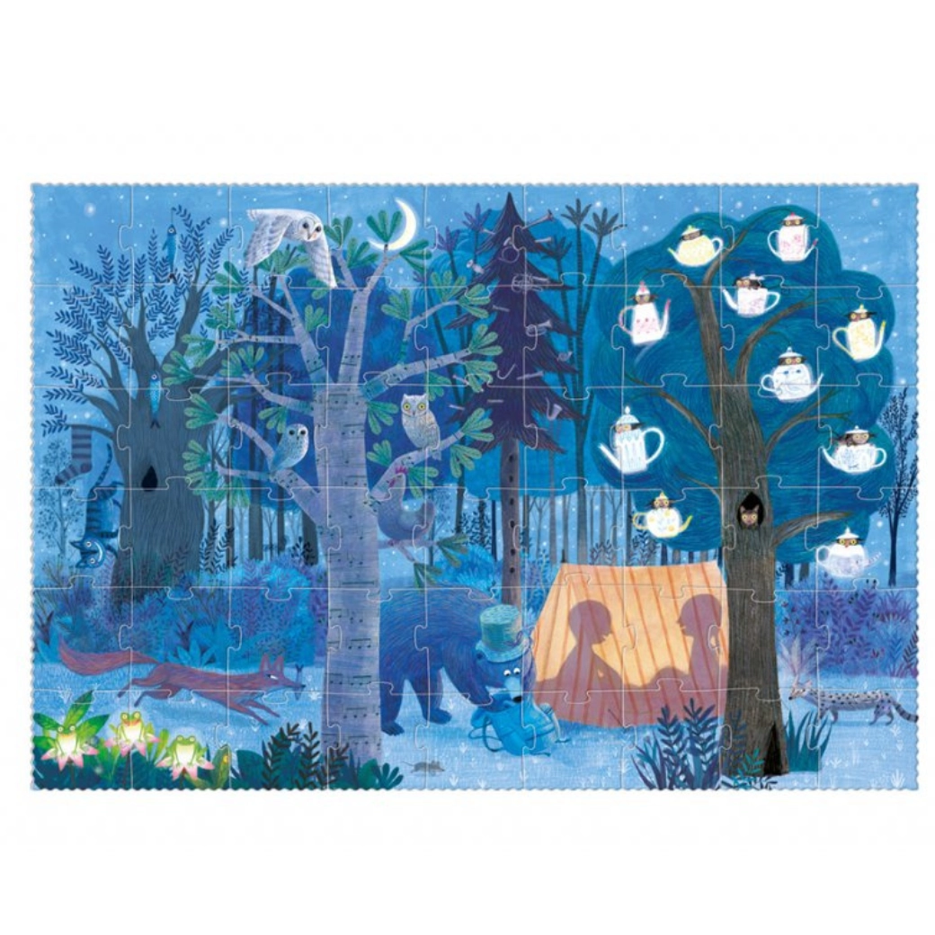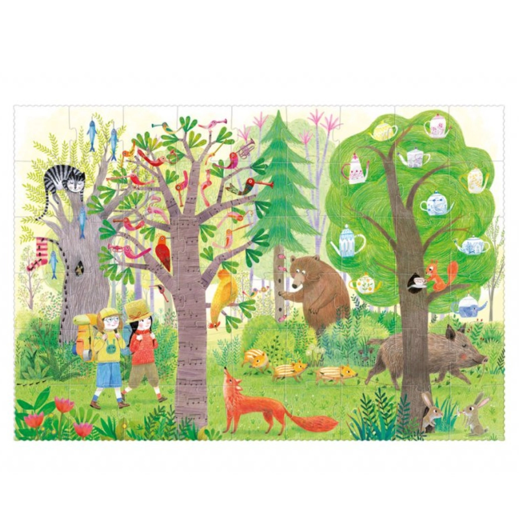 Divertiti con il puzzle doppio giorno e notte nella foresta, che offre due scene diverse con bellissime illustrazioni su un unico pezzo. Ideale per sviluppare l'immaginazione e la motricità fine dei bambini.