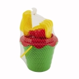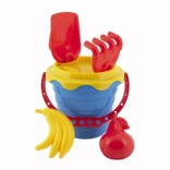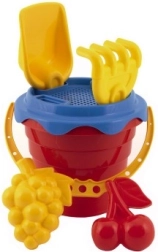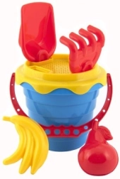 Include un pratico secchiello delle dimensioni di 12 cm, completo di setaccio per separare le particelle di sabbia più grandi. Il set comprende anche una paletta, un rastrello e due formine, permettendo al tuo bambino di creare costruzioni di sabbia originali.