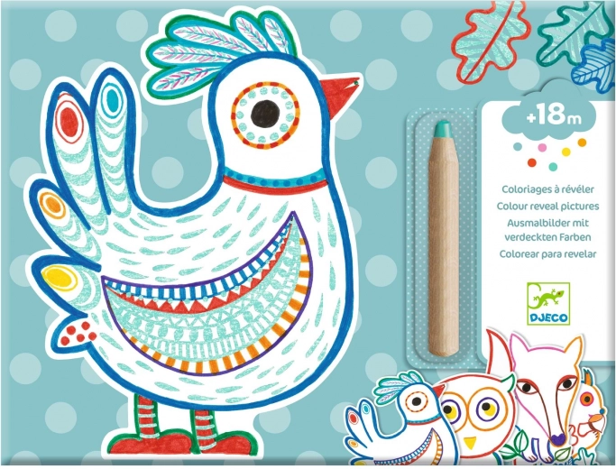 Colorazione magica Amici della Foresta del marchio DJECO è un set divertente e creativo per bambini, che permette di creare immagini colorate senza disordine.