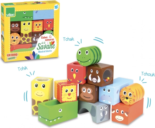 I cubi sonori in legno Savana di VILAC sono la scelta ideale per le prime esplorazioni. Ogni cubo nasconde un suono o un effetto diverso e, grazie al legno resistente, si adatta perfettamente alle manine dei bambini. Il gioco favorisce naturalmente lo sviluppo dei sensi e della creatività.