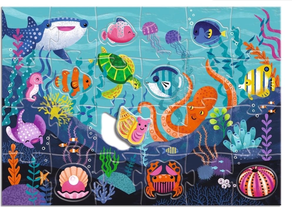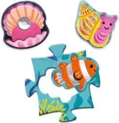Cercate un gioco creativo che intrattenga i bambini e al contempo sviluppi le loro abilità? Il puzzle Djeco Tactilo Mare offre una grande immagine di circa 70 × 50 cm e in più 8 pezzi separati a forma di pesci, granchi e altri animali marini, da inserire nelle posizioni corrette. I bambini allenano in modo ludico il riconoscimento delle forme e la concentrazione.