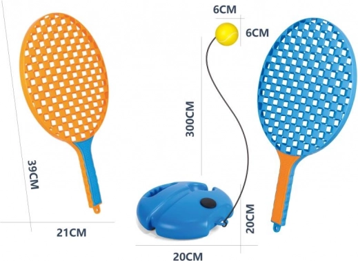 Allenatore di tennis Sporto con 2 racchette e pallina con cordicella. Base stabile da riempire con acqua, ideale per bambini dai 3 anni e per il divertimento in famiglia. Allena ovunque.