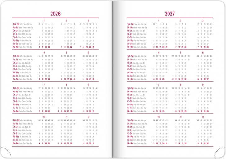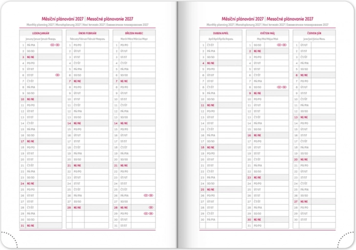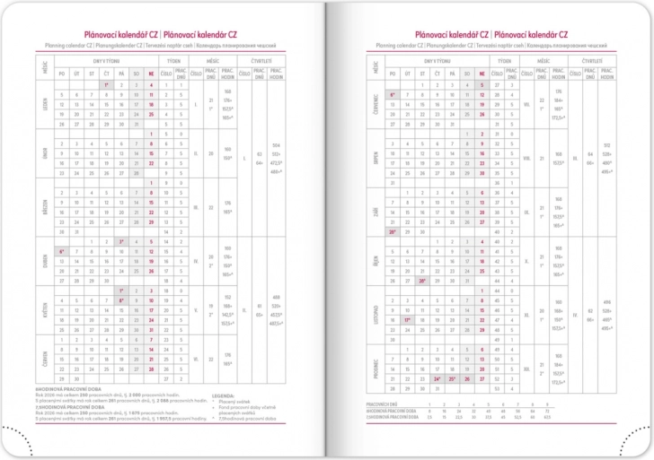- Calendario multilingue con descrizioni in ceco e slovacco e informazioni aggiuntive in inglese, tedesco, ungherese e russo.