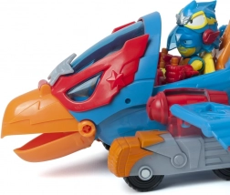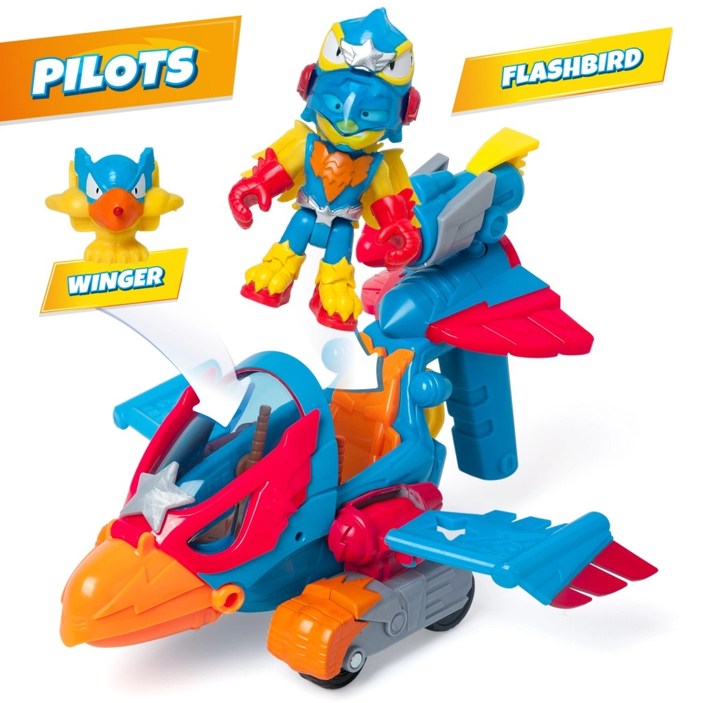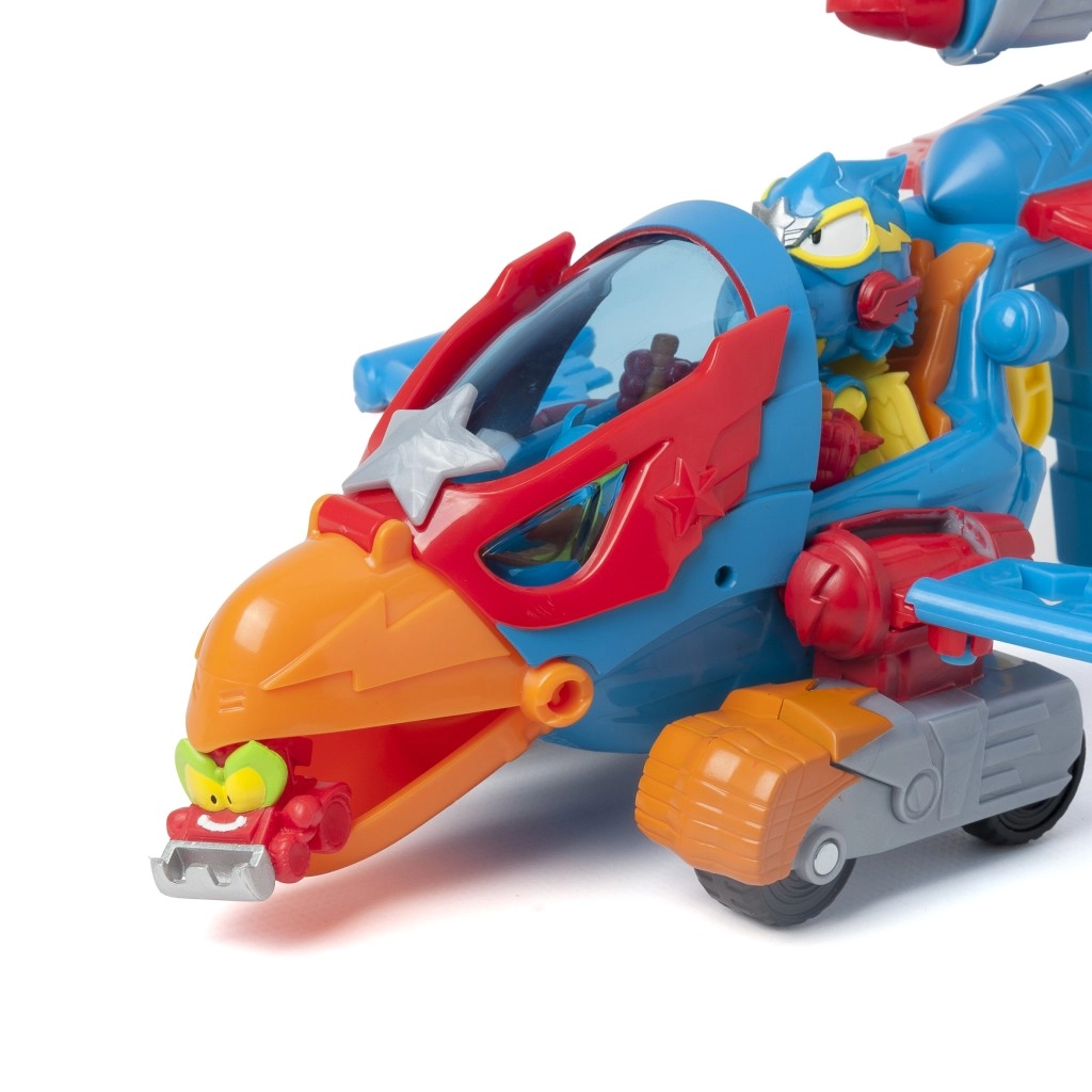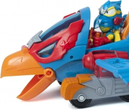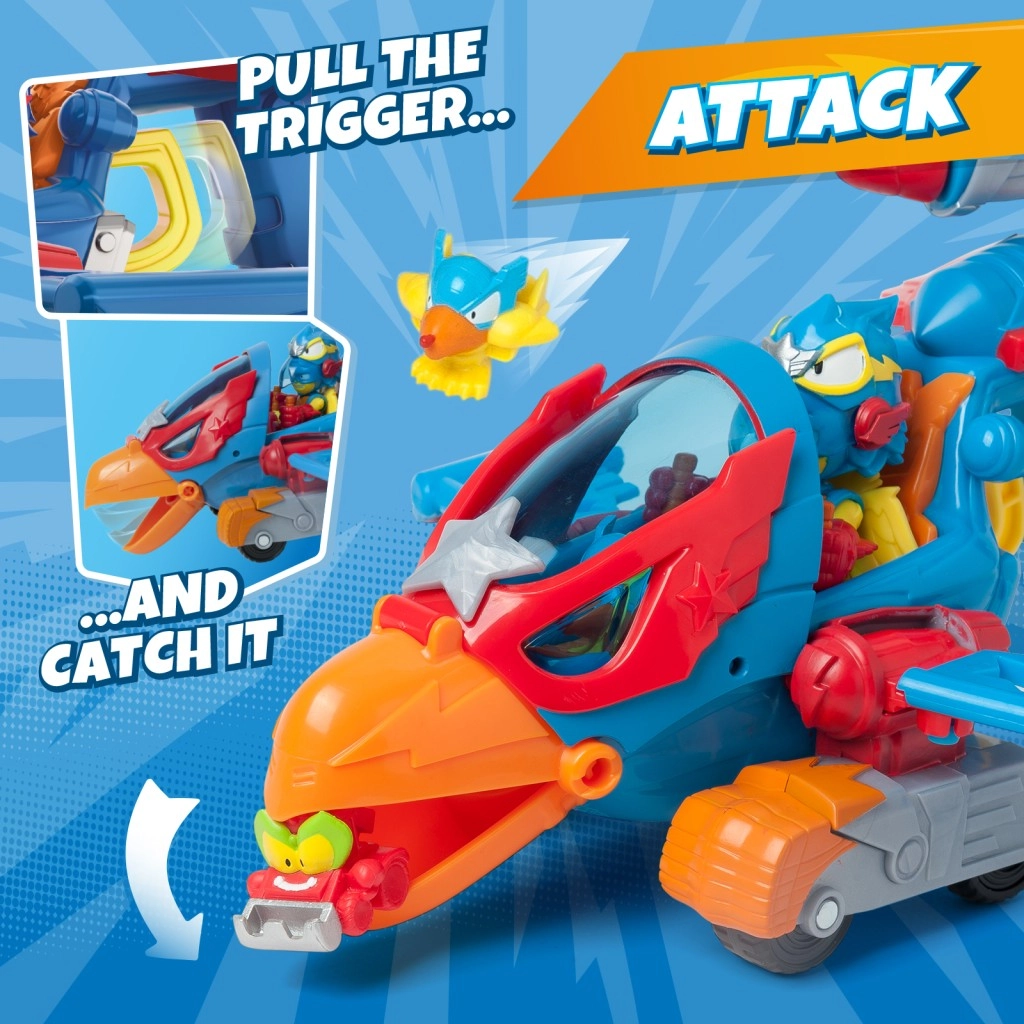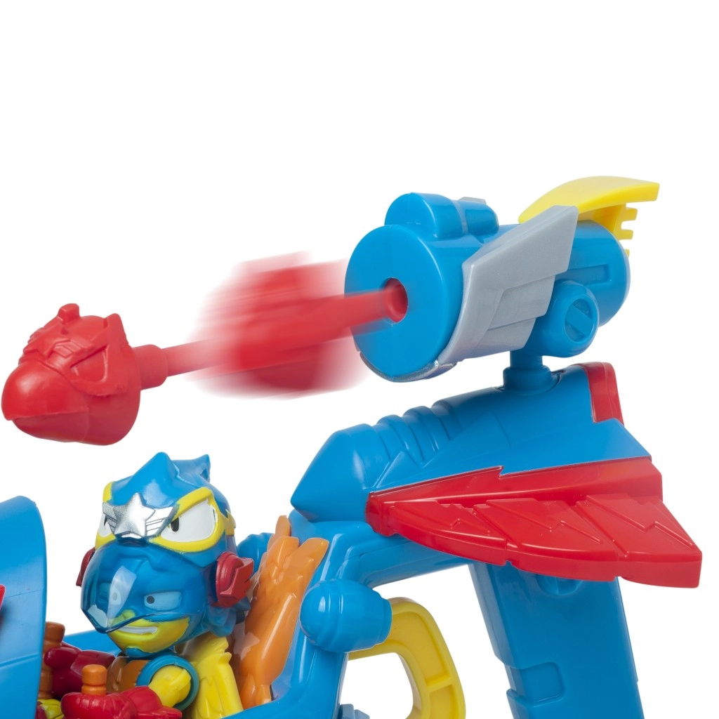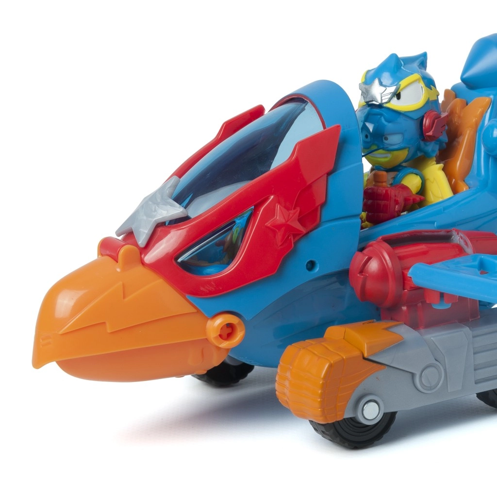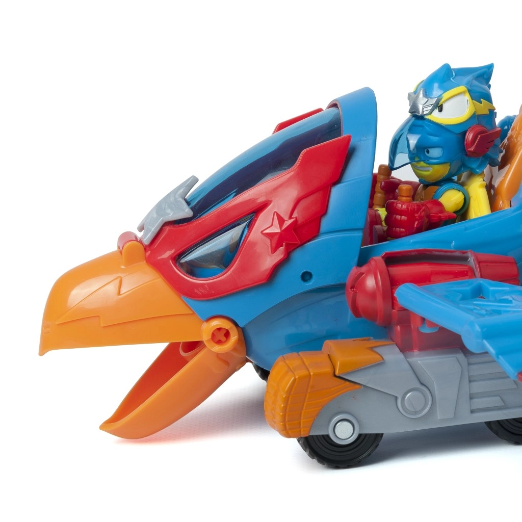 Entra nel mondo delle avventure con unico Kid e SuperThing, che possono volare nell'abitacolo del Wild Eagle Jet. Le ali mobili aggiungono realismo, mentre la rotazione del grilletto promette di abbattere i cattivi o di catturarli con il becco.