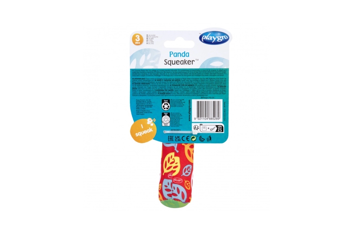 Squeaker Panda di Playgro è il compagno ideale per il tuo bambino. Il design ergonomico e i materiali vari garantiscono divertimento stimolante dai 3 mesi in su.