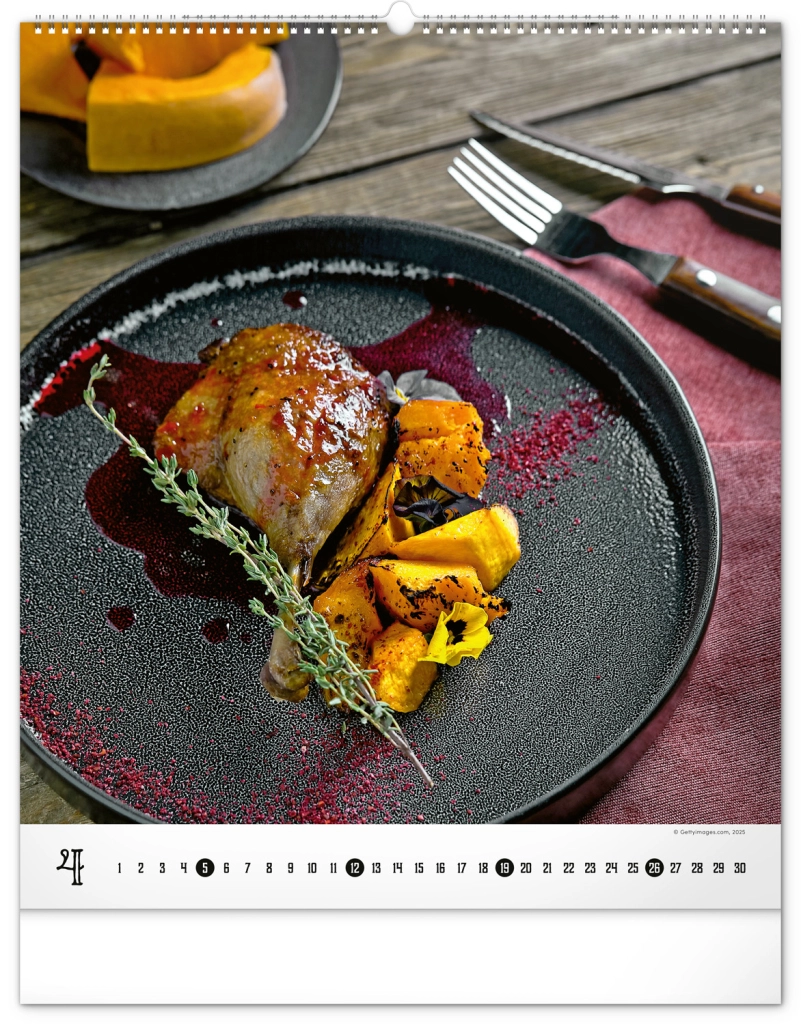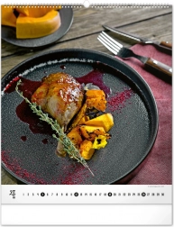 Calendario murale di grande formato della collezione Platinum Collection che offre fotografie ispiratrici di piatti gourmet, che non solo stimolano l'appetito, ma decorano elegantemente qualsiasi cucina o sala da pranzo.