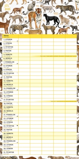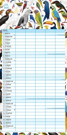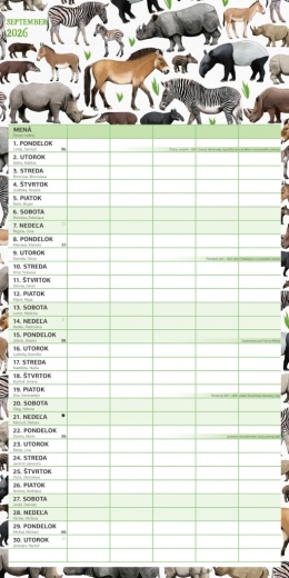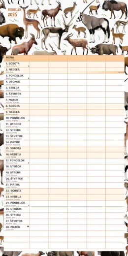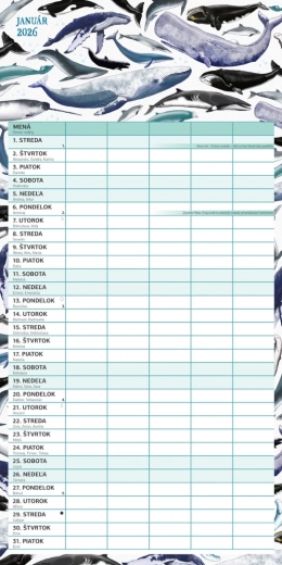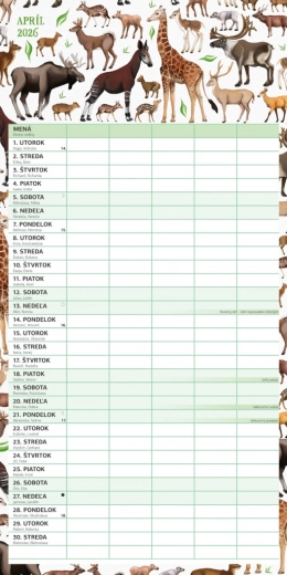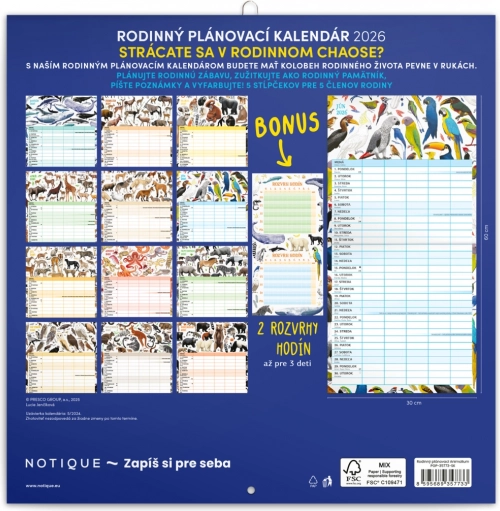 Goditi la pianificazione con questo bellissimo calendario familiare Animalium 2026, che contiene un calendario slovacco e consente una facile organizzazione delle attività per un massimo di cinque membri della famiglia.