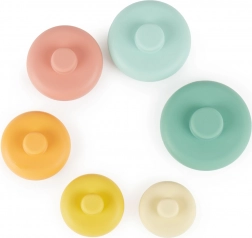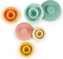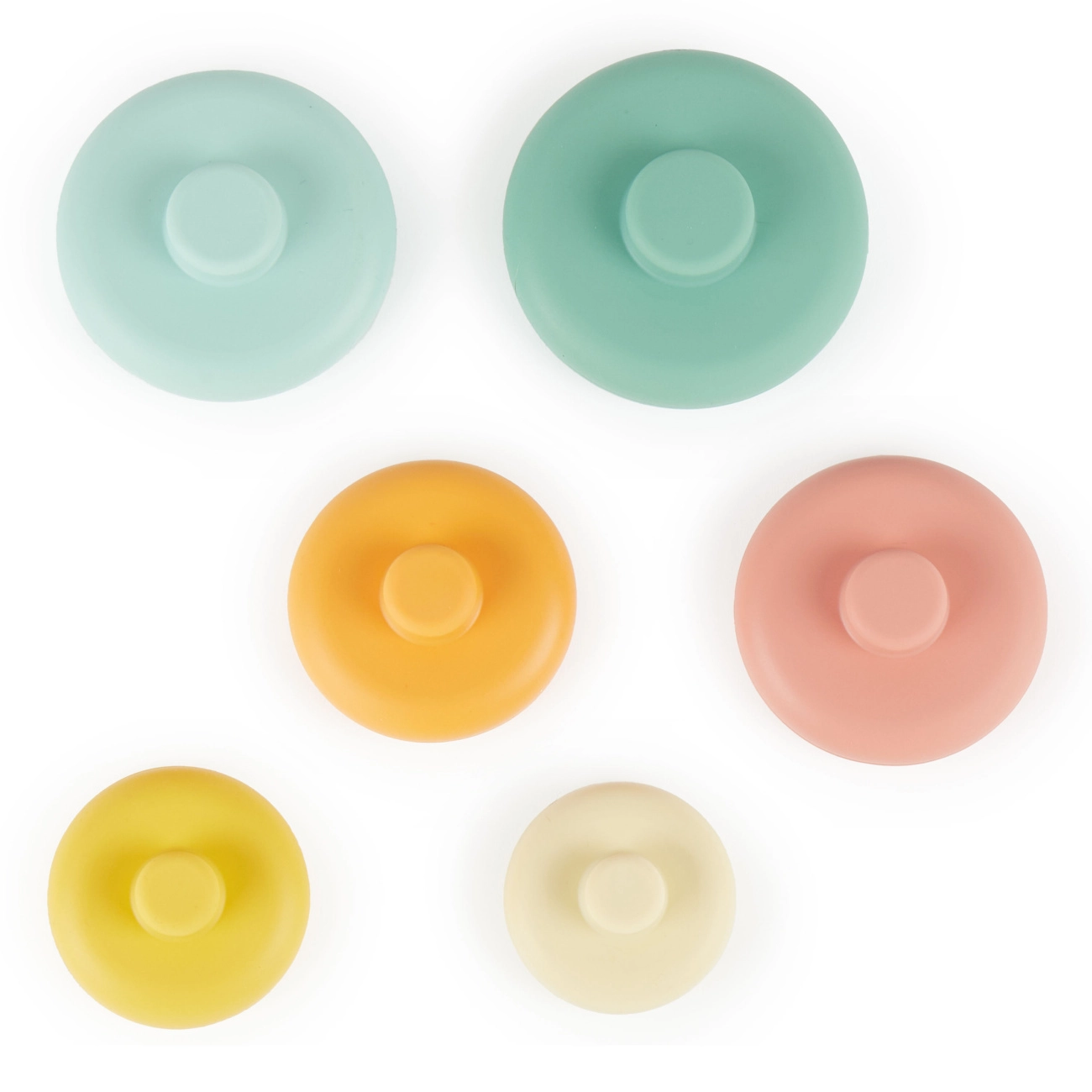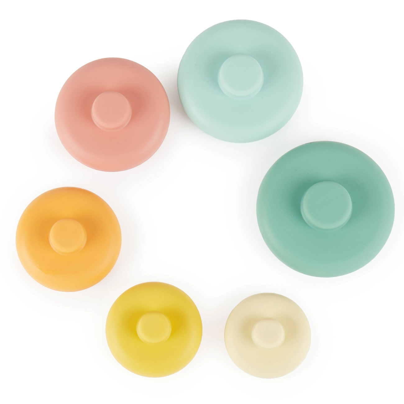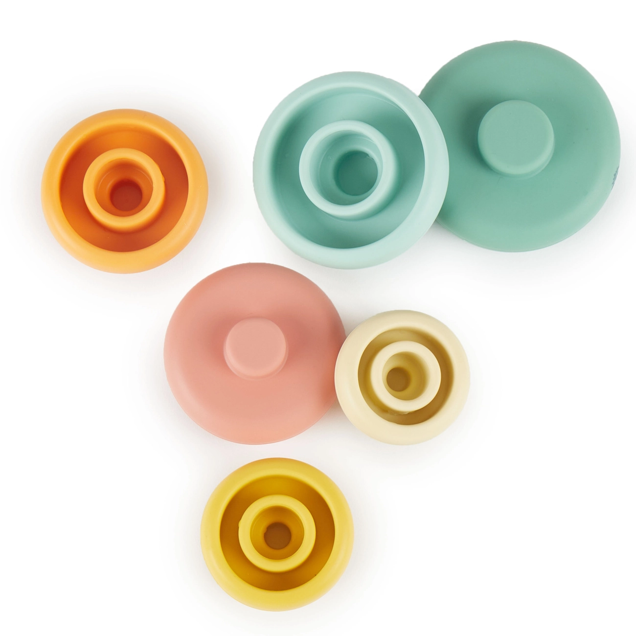 Giocattolo creativo per piccoli costruttori da 12 mesi. Supporta la curiosità e le abilità motorie dei bambini con questo set di impilamento in silicone a 6 pezzi, che offre opzioni di costruzione, ordinamento e scoperta dei colori. Adatto anche come compagno per il bagno!