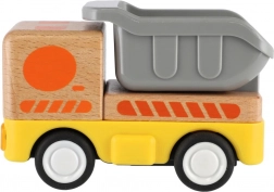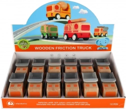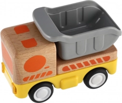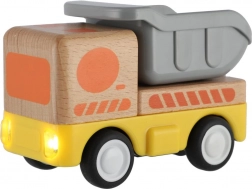 Robusto camioncino in legno con meccanismo a inerzia che entusiasma ogni piccolo autista! Il movimento a inerzia permette una semplice spinta del camioncino, che poi accelera da solo. Ideale per le piccole mani dei bambini.