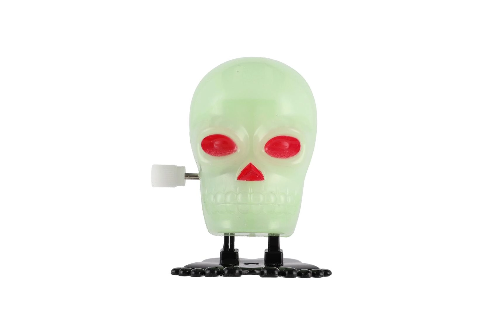 Giocattolo spaventosamente divertente per tutti gli amanti dei motivi horror! Il teschio di plastica, che dopo essere caricato comincia a rimbalzare, è un grande divertimento per ogni festa per bambini o per Halloween.