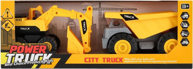 Ottimo set per piccoli costruttori! Due durevoli camion da costruzione in plastica con movimento libero, perfetti per ogni collezione. Si muovono facilmente su qualsiasi superficie - basta una leggera spinta e partono.