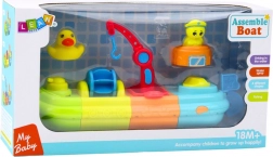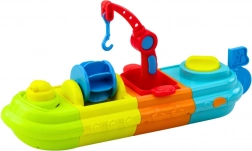 La nave è composta da quattro moduli colorati che formano una grande composizione. A bordo ci sono figure divertenti di passeggeri - una paperella e una tartaruga, e molti elementi mobili, come una gru con gancio, una ruota idraulica e un cannone ad acqua. La paperella può spruzzare acqua, il che farà sicuramente ridere ogni bambino. Altri contenitori permettono di travasare acqua, arricchendo il gioco e favorendo lo sviluppo sensoriale.
