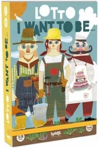 Loto LONDJI Vorrei diventare è il gioco perfetto per tutta la famiglia, che promuove l'apprendimento delle professioni in modo divertente. I giocatori hanno a disposizione carte con illustrazioni di personaggi di varie professioni e gettoni con strumenti che sono caratteristici di queste professioni.