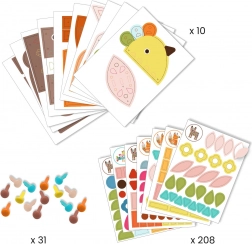Porta creatività nel mondo dei bambini con questo set creativo con adesivi del marchio DJECO! Segui i modelli allegati, attacca gli adesivi e completa gli animali. Una volta completato, assemblare e creare impressionanti figure in 3D: orso (50 cm), volpe (40 cm) e uccello (28 cm).