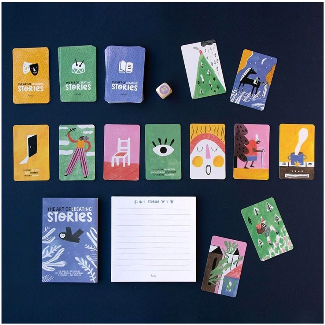 Il gioco di carte Londji Storie è un ottimo modo per creare e raccontare storie collettivamente. I giocatori usano carte illustrate per creare storie avvincenti. Il gioco è diviso in tre blocchi di carte: storie, ritmi e generi. A ciascun giocatore viene dato un foglio e, in base al lancio del dado, le carte vengono girate per creare la storia.