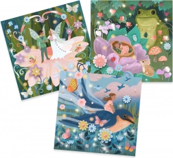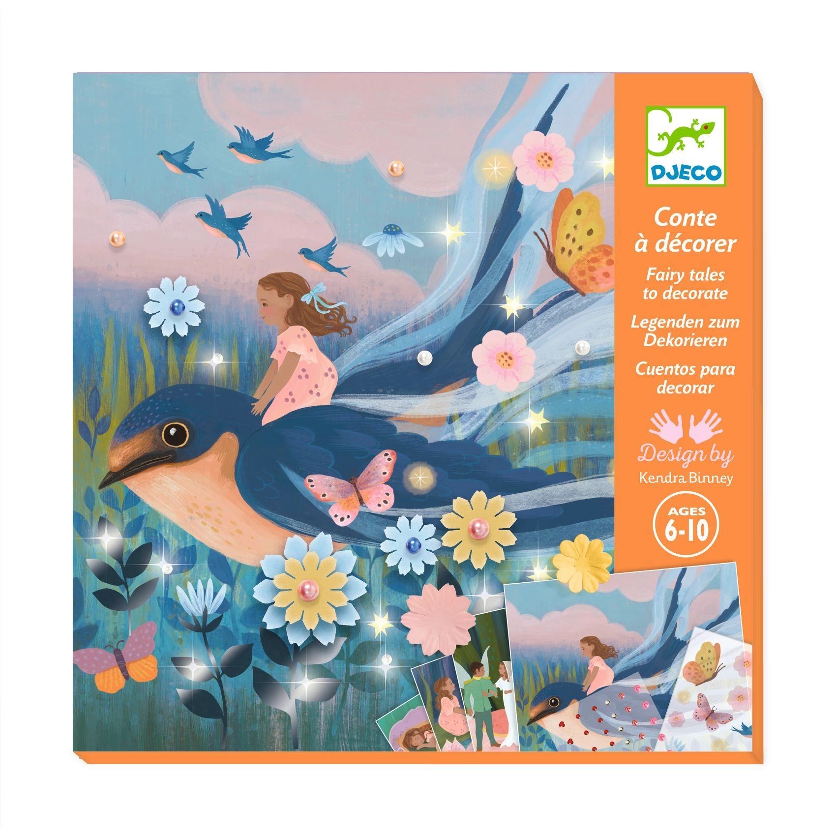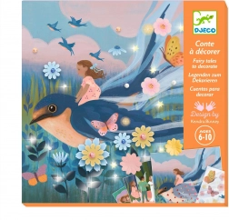 DJECO Favole da Completare O Malence è un set creativo che offre infinite possibilità per decorare scene di carta con adesivi, decalcomanie e fiori di carta. Un grande divertimento per i piccoli artisti.