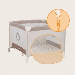 Il box è anche dotato di un materasso in schiuma T25 comodo e 2 ruote con freno per un facile spostamento. È inclusa anche una pratica borsa da trasporto, che facilita la manipolazione e lo stoccaggio.