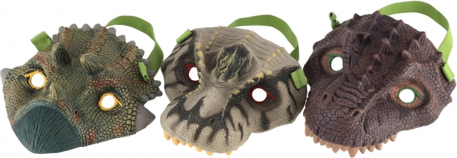 Maschera di dinosauro in gomma per bambini, ideale per carnevale. Indossamento confortevole grazie al materiale morbido.