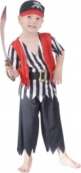 Preparati per il carnevale o una festa per bambini con il costume di carnevale pirata. Il costume è progettato per adattarsi ai bambini di età 3-4 anni, con una taglia adatta per i più piccoli da 92 a 104 cm.