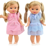 Adorabile bambola con trecce e bretelle è ideale per ogni piccola signorina. Il suo abbigliamento a righe con decorazioni incanterà sicuramente ogni cuore di bambino.