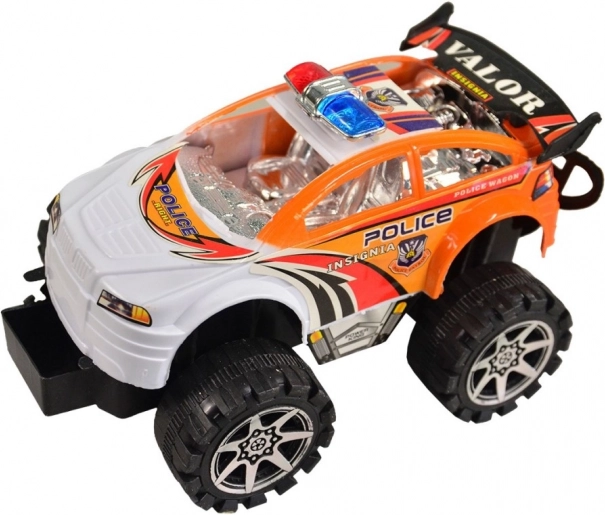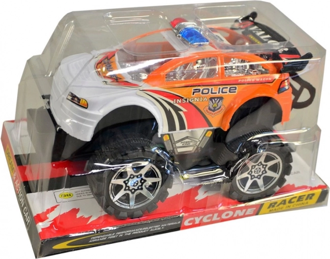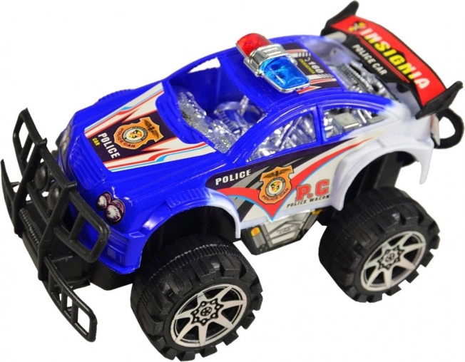 Auto della polizia fuoristrada, un giocattolo ideale per piccoli avventurieri. Si distingue per il suo materiale plastico e le grandi ruote che affrontano terreni accidentati.
