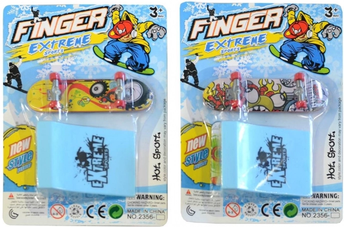 Fingerboard con rampa per bambini 3+. Plastica di qualità, dimensioni 19x15 cm, nessuna batteria. Grande divertimento e sviluppo delle abilità.