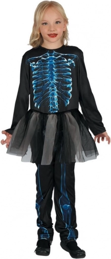 Prepara tua figlia per un carnevale indimenticabile con questo abito di Carnevale Scheletro per ragazze, ideale per il gruppo di età 9-12 anni.