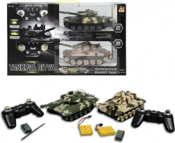 Questo set di carri armati offre un divertimento interattivo ricco con funzioni di combattimento realistiche. Frequenza 27/40 MHz garantisce un controllo affidabile fino a una distanza di 15 m. Ogni carro armato è dotato di cannoni con diodi infrarossi per registrare i colpi. I telecomandi includono un grilletto che assicura un'esperienza di combattimento autentica. Quando il carro armato viene colpito, si sente un suono di esplosione e i diodi sulla torretta sottraggono i “punti vita”.