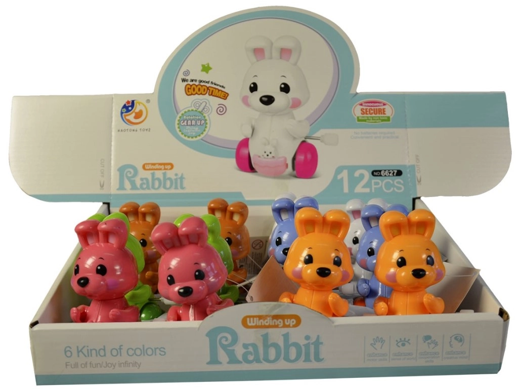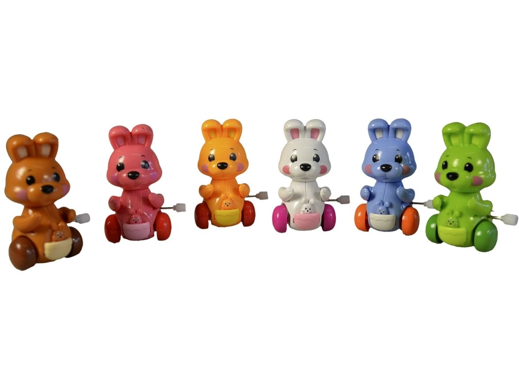 Il coniglietto a molla di dimensioni 9 cm offre un grande divertimento per i bambini. Basta girare la chiave e osservare come il coniglietto allegramente avanza in sei diversi colori.