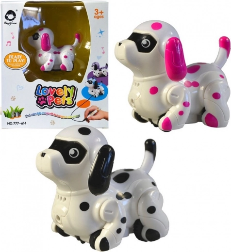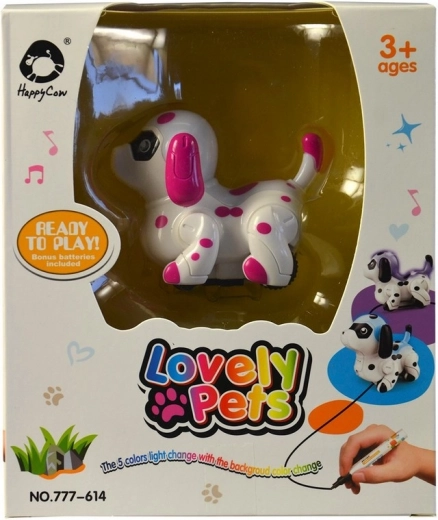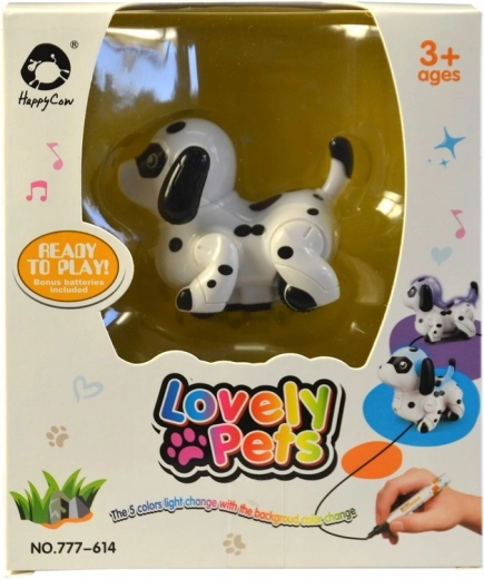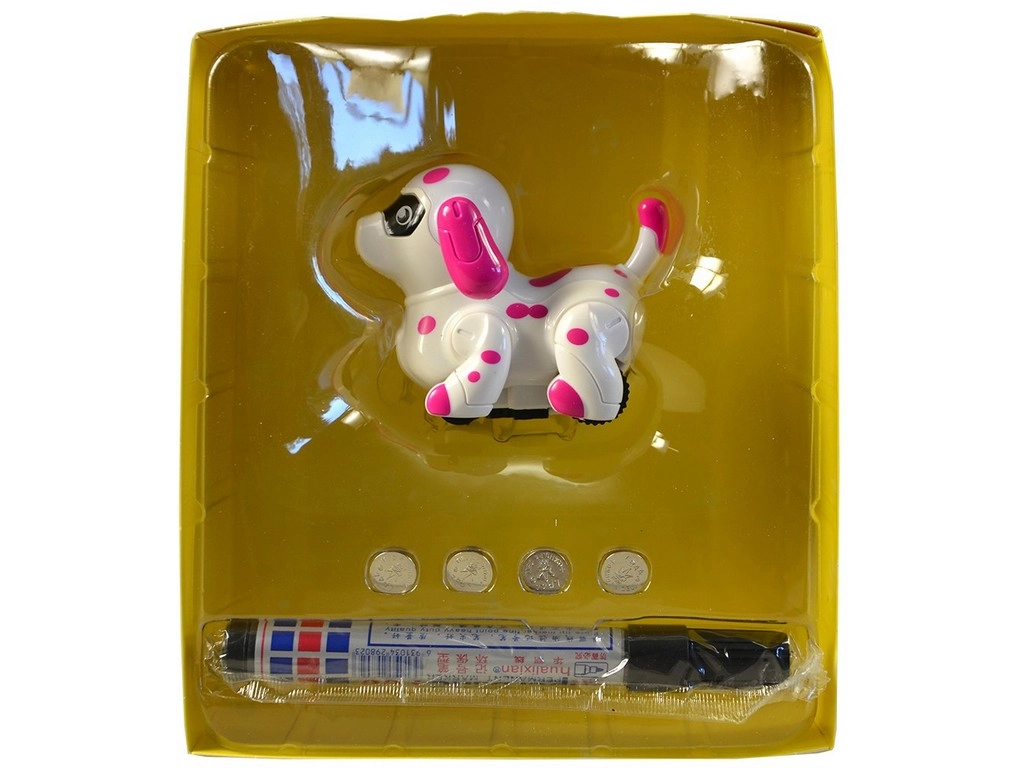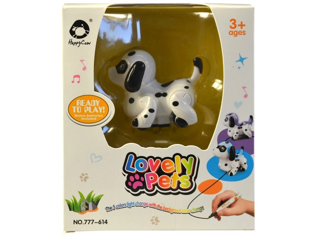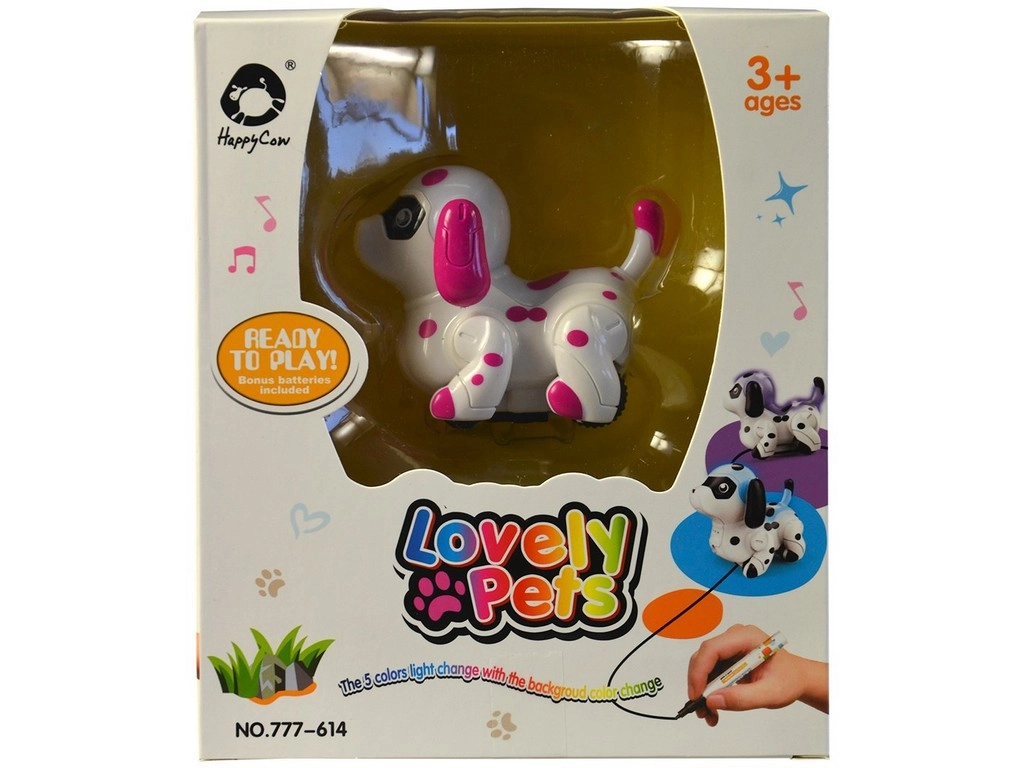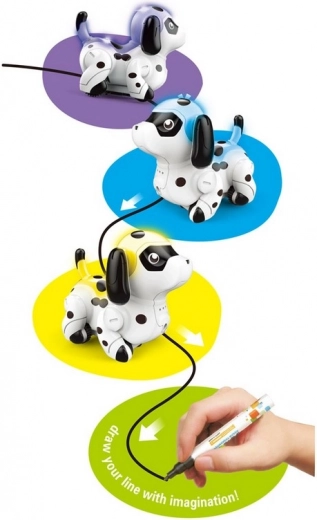 Divertente cagnolino a batteria, capace di viaggiare su una linea disegnata e cambia colore quando attraversa superfici colorate.