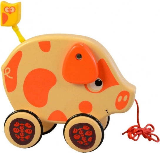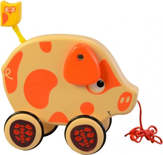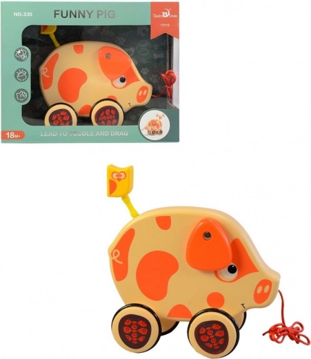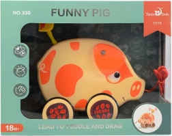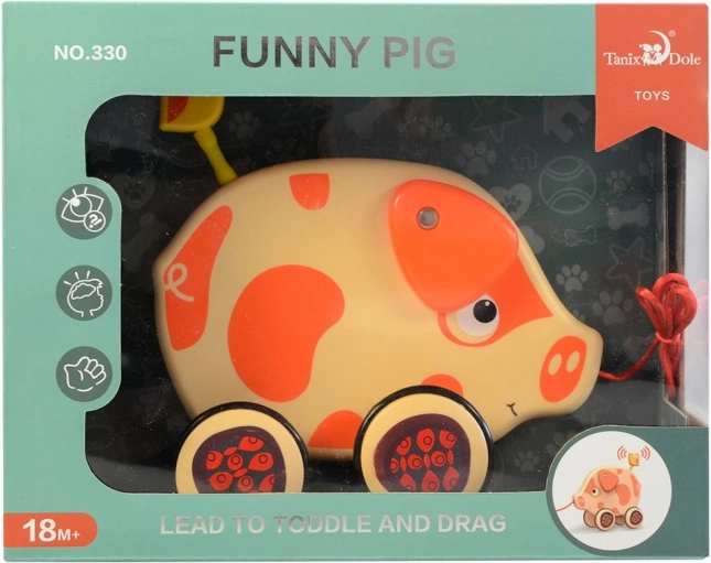 Maialino su corda è un giocattolo divertente per bambini che offre tanto divertimento. Basta tirarlo per la corda e il maialino seguirà, animando il gioco con un allegro movimento della coda.