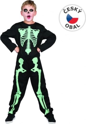 Questo costume di carnevale per ragazzi presenta uno scheletro che si illumina al buio, una scelta ideale per qualsiasi festa per bambini. Il costume include una tuta con elementi che si illuminano al buio, aggiungendo spettacolarità e divertimento.