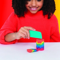 Questo set combina la celebre sabbia Kinetic Sand con pratici strumenti per tagliare, mescolare e modellare. Crea arcobaleni realistici, sovrapponi i colori e costruisci castelli variopinti: la sabbia mantiene la forma, non appiccica ed è piacevole al tatto.
