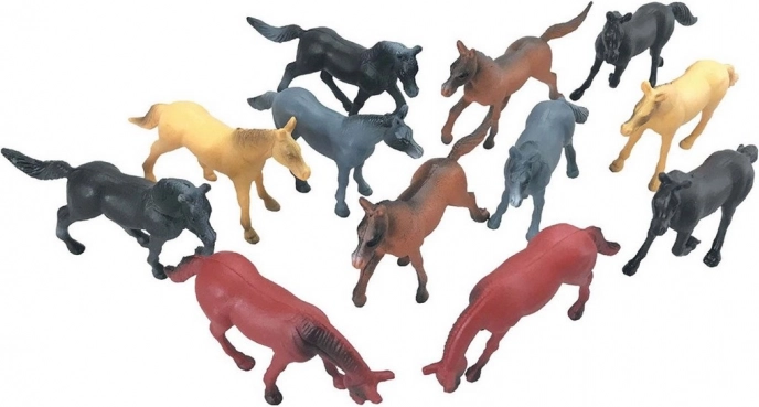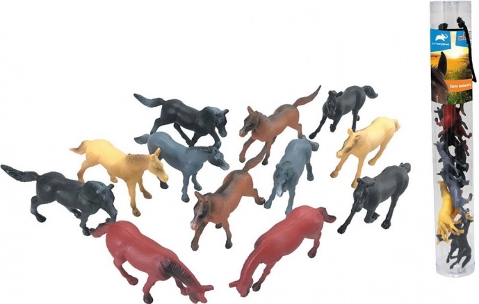 Animali nella tuba - Cavalli è un set di 12 cavalli in PVC morbido, ideale per bambini dai 3 anni in su. Queste figurine sono ecologiche e realizzate con materiali riciclati.