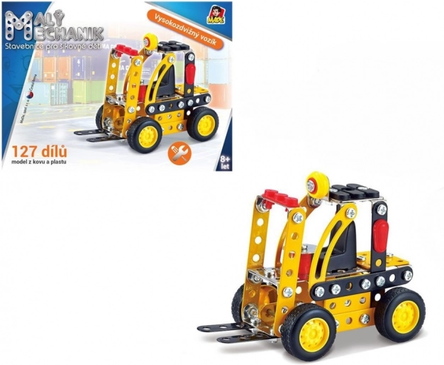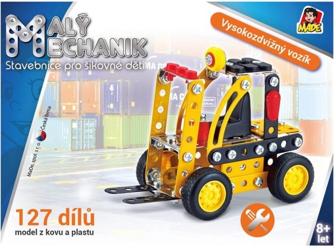 Il set Piccolo Meccanico offre l'opportunità ai bambini di creare e sviluppare le loro capacità tecniche in un ambiente sicuro. Questo kit contiene 127 pezzi che combinano parti metalliche e plastiche, con cui i bambini possono realizzare il proprio carrello elevatore.