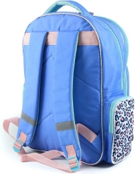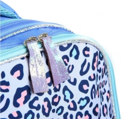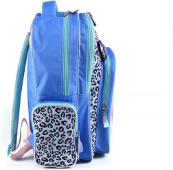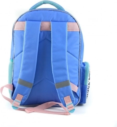 Lo zaino è progettato con sfumature predominanti di blu-viola e motivi adorabili, rendendolo un accessorio giocoso e popolare per i bambini.