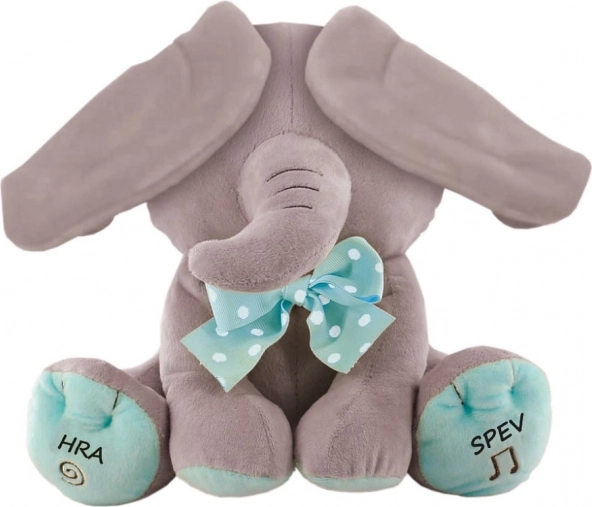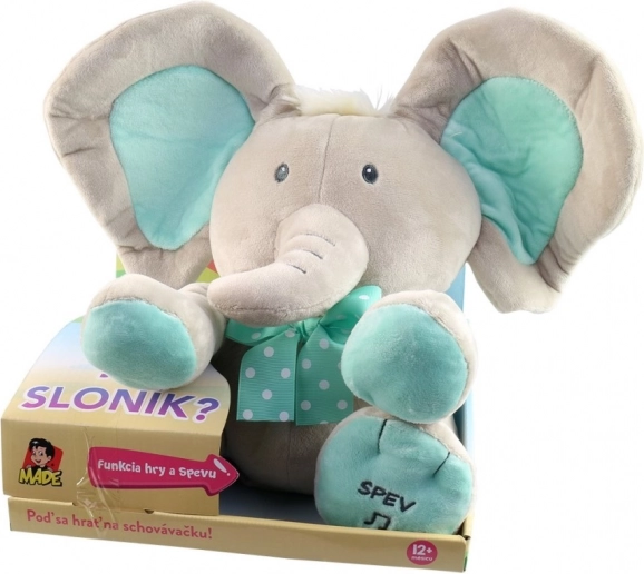 Adorabile elefante a nascondino 25 cm, giocattolo interattivo che parla e canta in slovacco. Adatto ai bambini dai 12 mesi.
