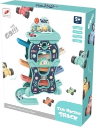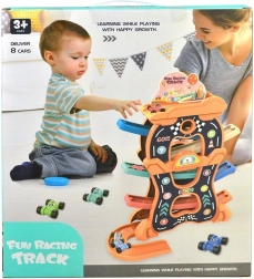 Pista d'auto divertente progettata per i piccoli corridori offre esperienze straordinarie. Lancia la macchina dalla cima e guarda come sfreccia verso il basso lungo la pista.