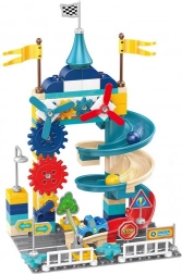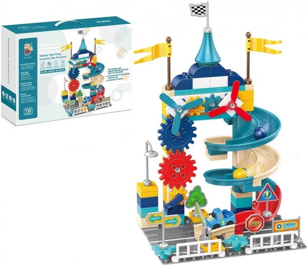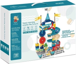 Questo set di blocchi con pista per biglie contiene 110 pezzi che i bambini possono collegare e combinare secondo la loro immaginazione. Il giocattolo è realizzato in plastica di qualità, sicura e resistente. I blocchi si montano e smontano facilmente, facilitando così il loro riordino e stoccaggio nella scatola inclusa.