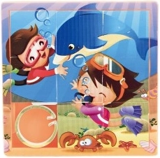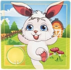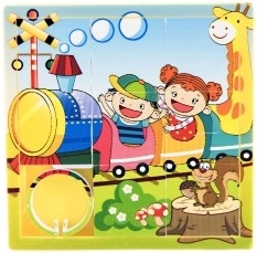 Questo puzzle scorrevole è un giocattolo divertente che intrattiene i bambini per ore. Si tratta di un set di otto pezzi delle stesse dimensioni con scanalature laterali che formano un'immagine finale. I pezzi sono facilmente spostabili e incorniciati per evitare che cadano. La cornice contiene una miniatura dell'immagine finale, che serve da guida per posizionare i pezzi.