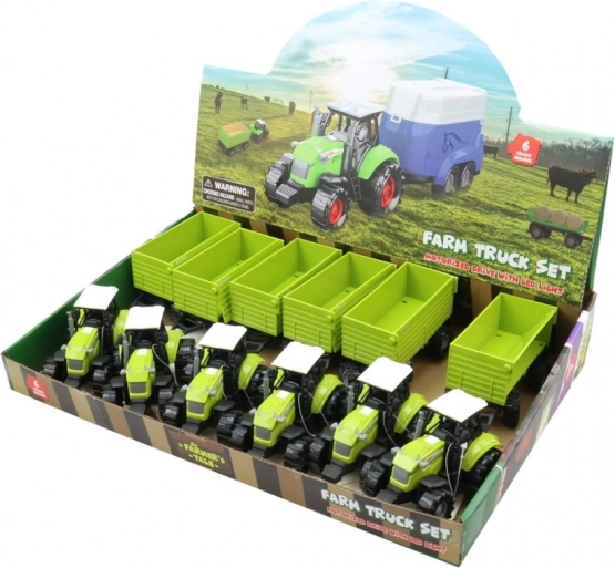 Trattore con rimorchio per bambini 3+, con ruote libere, luci e suoni, in plastica resistente. Ottimo giocattolo per ragazzi.