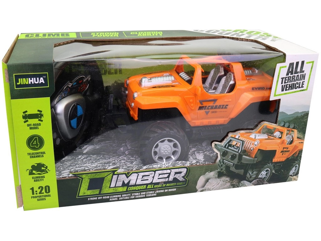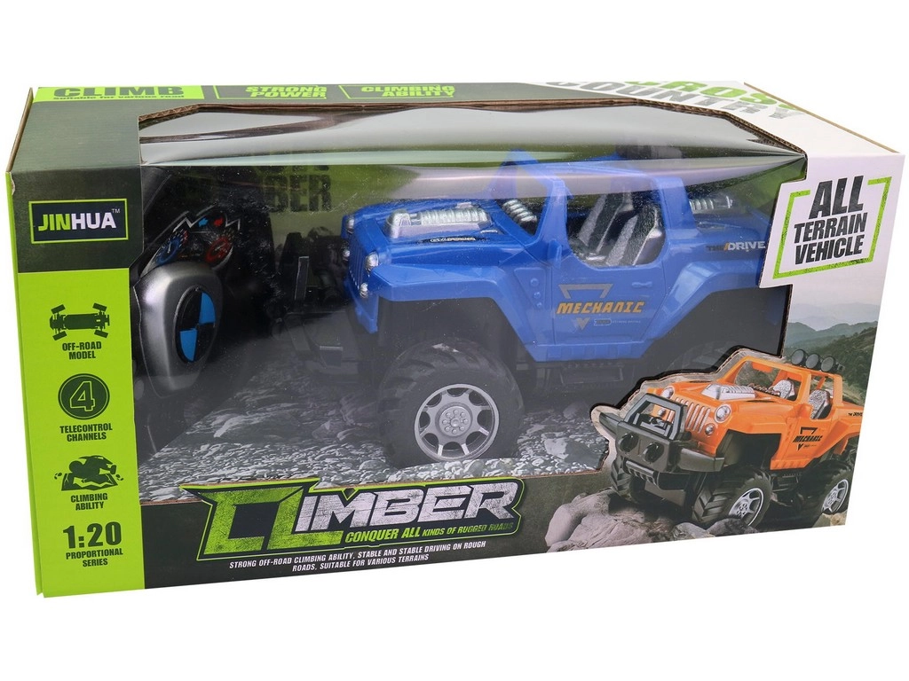 Auto fuoristrada telecomandato che affascina ogni piccolo pilota con il suo colore blu e gli effetti luminosi. Destinato ai bambini dai 3 anni in su, ideale per i giochi avventurosi in fuoristrada.