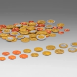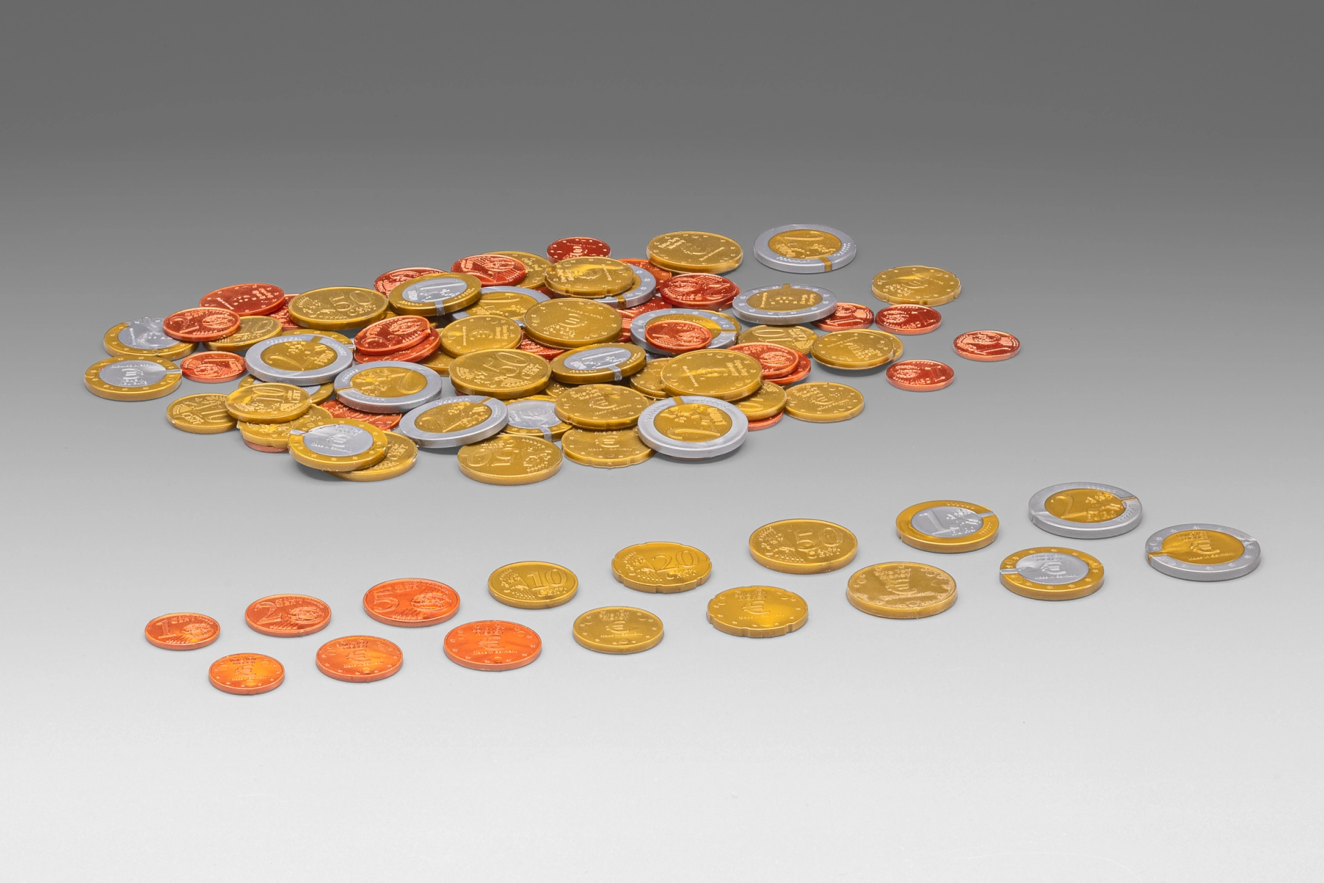 Le monete sono realizzate in plastica riciclabile al 100%, nel rispetto dell'ambiente. Ogni confezione contiene 80 monete di diversi valori (da 1 centesimo a 2 Euro), consentendo ai bambini di divertirsi con un gioco realistico con il denaro.